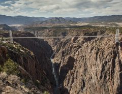 The idea for a cable car to the summit, the Téléphérique de l’Aiguille du Midi, was originally proposed around 1909, but did not come into operation until 1955 when it held the title of the world’s highest cable car for about two decades. It still holds the record as the highest vertical ascent cable car in the world, from 1,035 m to 3842 m. There are two sections: from Chamonix to Plan de l’Aiguille at 2,317 m and then directly, without any support pillar, to the upper station at 3,777 m (the building contains an elevator to the summit). The span of the second section is 2,867 m (1.781 mi) measured directly, but only 2,500 m (1.6 mi) measured horizontally. Thus it remains the second longest span width, measured directly. The cable car travels from Chamonix to the top of the Aiguille du Midi – an altitude gain of over 2,800 m – in 20 minutes, costing around €57 for an adult-ticket from Chamonix and back.