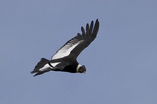 - Andean condor is a massive raptor inhabits in the high peaks and grassy plains across South America. It is a large flying bird, weigh up to 15 kg. spanning up to 10 ft 6 in, Andean condors have the longest wingspan of any raptor in the world, . They love to glide in the wind and can each a maximum height of 15000 feet.