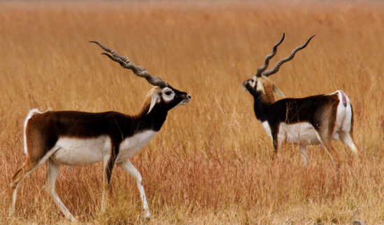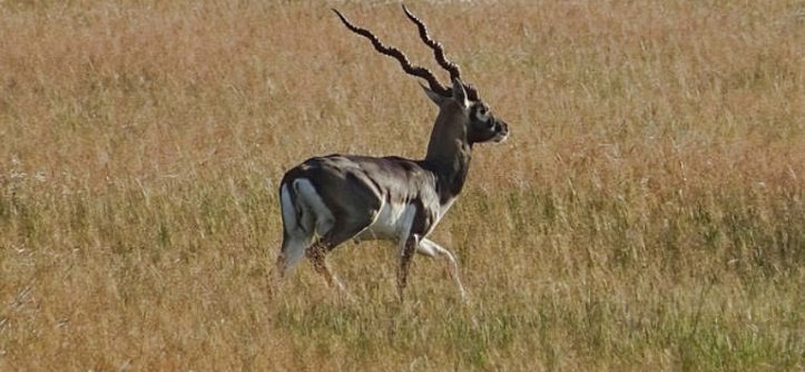 - The blackbuck antelopes native to the Indian subcontinent are better known for the long ringed horns of males. The horns stretches up to 28 inches and have 3-5 turns. The horn of male blackbuck also look like in a ‘V’ shape. Female blackbucks don’t have horns. The male blackbucks are in dark brown where females have yellowish brown coat. The male blakbucks are also noticeably larger than that of females.