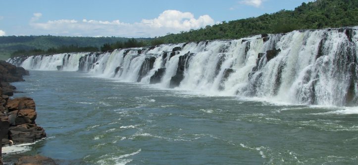 Overview Saltos del Mocono is part of the River Uruguay in Argentina. It’s amongst the most unique of all large-river waterfalls, as it drops down a 6,000-foot trough that has been carved lengthways into a basaltic formation. This makes it