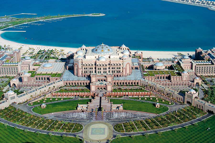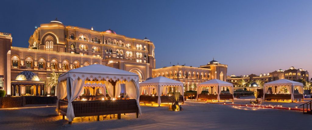 - Emirate Palace also features 114 impressive domes standing at a height of 60 meters. The private beach of Emirates Palace stretches across 1.3 kilometers. The hotel also offers swimming pools, luxury spa, tennis courts and cricket courts.