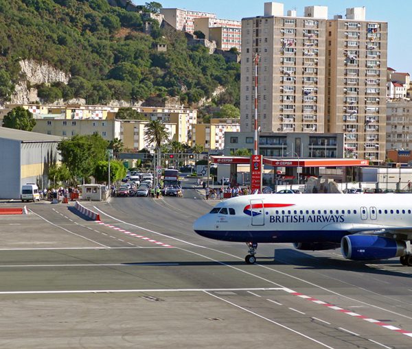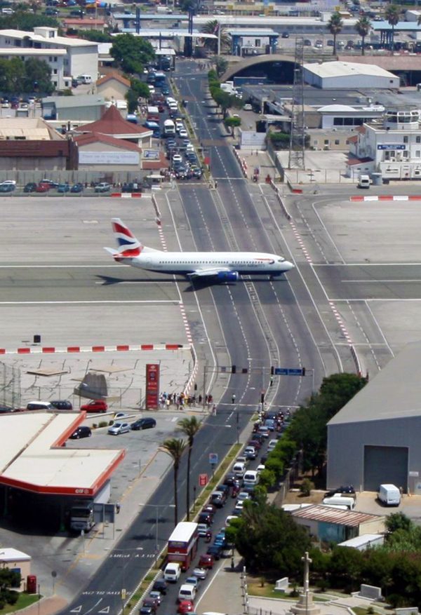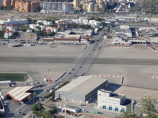 - Gibraltar is a crossroads of history, and that theme carries through to its airport, where more than 415,000 passengers flew in 2014. Planes using Gibraltar’s sole 5500-foot runway (09/27) must cross the street Winston Churchill Avenue, to be precise, the main road heading toward the land border with Spain.