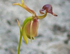 - This bizarre looking perennial plant is native to South America. The happy alien plant is also known as ‘Darwin’s slipping flower’. This strange plant was discovered by Charles Darwin in between 1831-1836. The flower look like happy faced alien with empty white tray in its hands. The happy alien plants are also found in rocky alpine terrains of the Southern regions of South America. So for an observer it looks like a totally strange flowering plant in an alien planet.