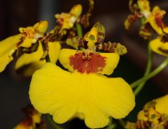 - The happy alien plant bloom in summer season. The unusual flower has a height of 2 inches and a punch like shape. The happy alien flowers display a combination of orange and yellow. The throat of the flowers is in deep red and also has a white band inside the tray like part of the flower.