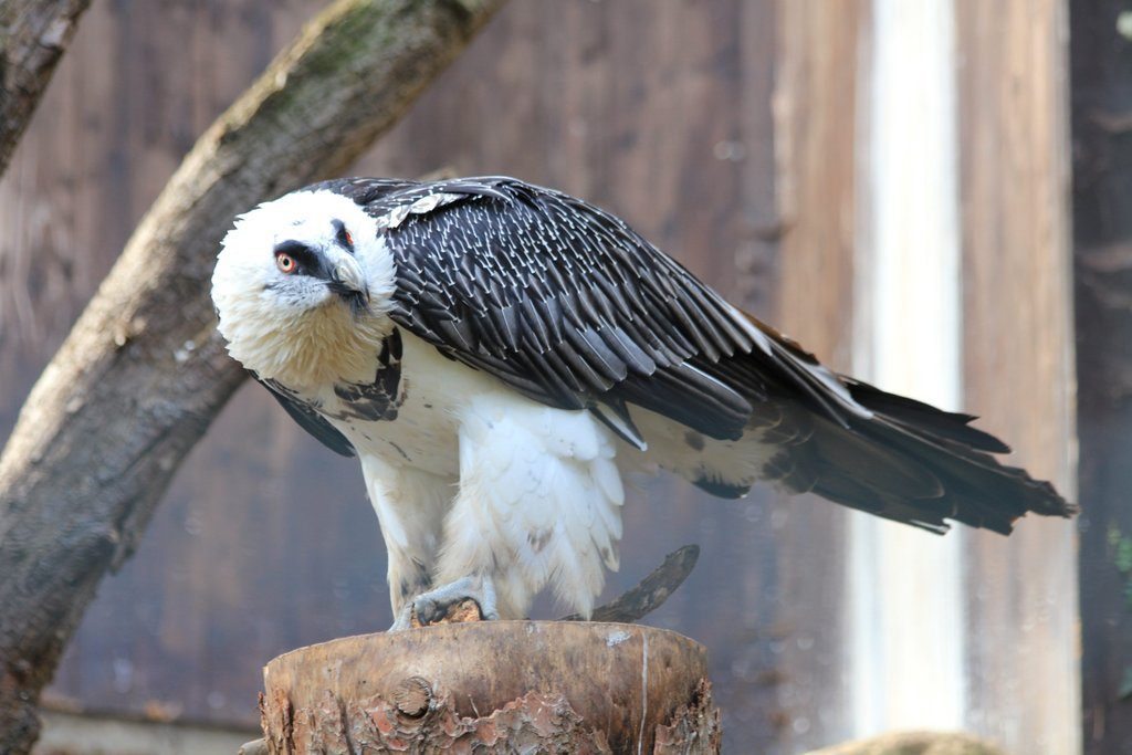 - Bearded vultures also known as ‘bone-eater’ because they exclusively feed on carcass bones. They swallow small bones by the whole. If a bearded vulture gets a big bone it would break the bone into smaller pieces by dropping the bone from a height on the rocks. Also, Bearded vulture’s stomach acid can easily digest the bone pieces.