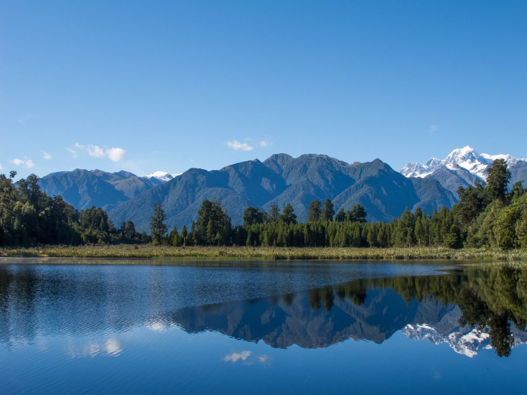 - The lake matheson is one of the most scenic locations in New Zealand. It is located in South Westland of New Zealand, a few kilometers near the popular Fox Glacier. Matheson lake is known for offering a stunning mirror view of two highest peaks of New Zealand called Mount Cook and Mount Tasman.