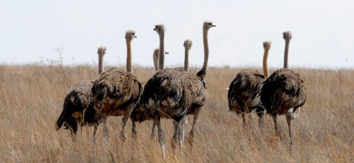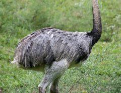 - Ostriches mainly feed on seeds, shrubs, fruits, flowers and small insects. They also swallowed pebbles for grilling foods in gigerium. Interestingly, ostriches can hold up to 1.3 kilograms of pebbles and sand within their gigerium. Ostriches can also live without water for several days.