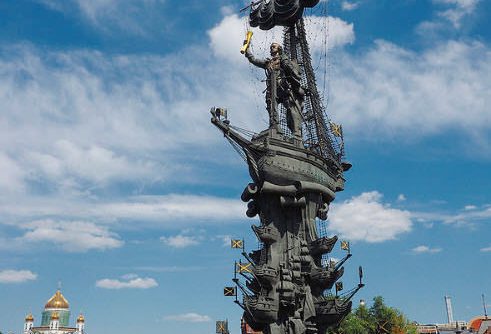 - This statue was built in the memory of Russian emperor Peter I, who ruled the country for 43 years. The 98 meter tall Peter the Great statue facing Moskva river in Moscow city. The statue was designed by the Georgian designer Zurab Tsereteli, used 600 tons of stainless steel and Bronze. Peter the great statue weighs 100 tons and it unveiled in the year 1997.